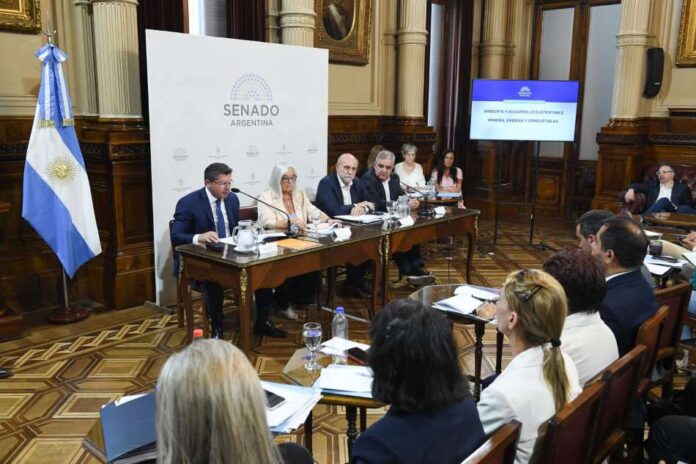 El mandatario sanjuanino expuso en el salón Arturo Illia del palacio legislativo en Buenos Aires, en el marco de la reunión plenaria de las comisiones de Ambiente y Desarrollo Sustentable y de Minería, Energía y Combustibles del Senado de la Nación donde se discute esta importante temática.