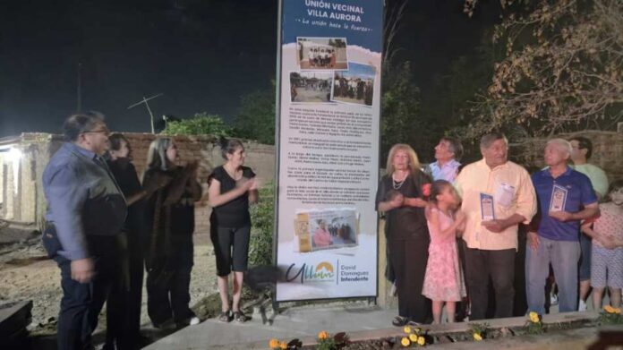 En esta oportunidad, el municipio concretó una intervención urbana en Villa Aurora, un sector histórico del departamento que los vecinos urbanizaron a partir de la donación de una finca allá por el año 1965. Con el propósito de realzar su tradición y rendir homenaje a las familias fundadoras, la municipalidad intervino arquitectónicamente 5 esquinas, sumó veredas y colocó tótems informativos que rememoran la historia del lugar, club y unión vecinal.